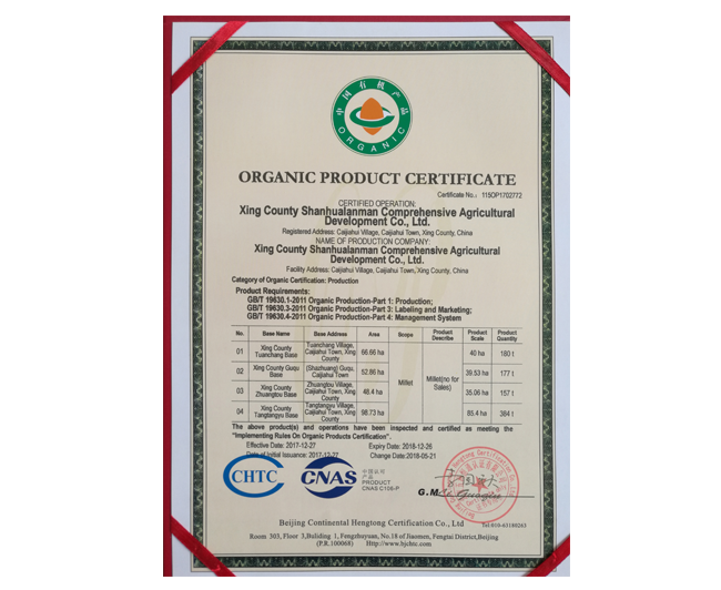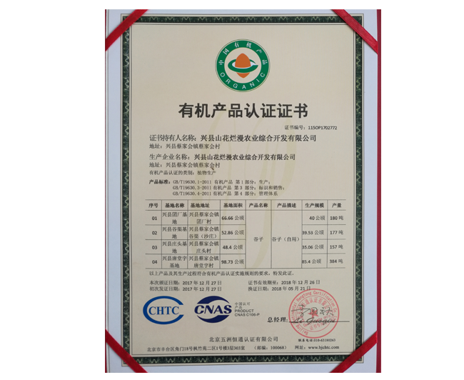 • 有機產(chǎn)品認證證書